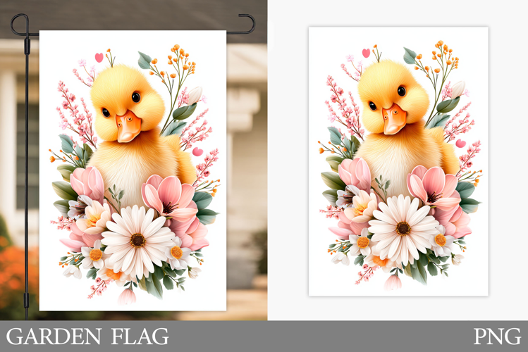 Cute Duck Garden Flag Design. Duck Flowers Garden Flag example image 1