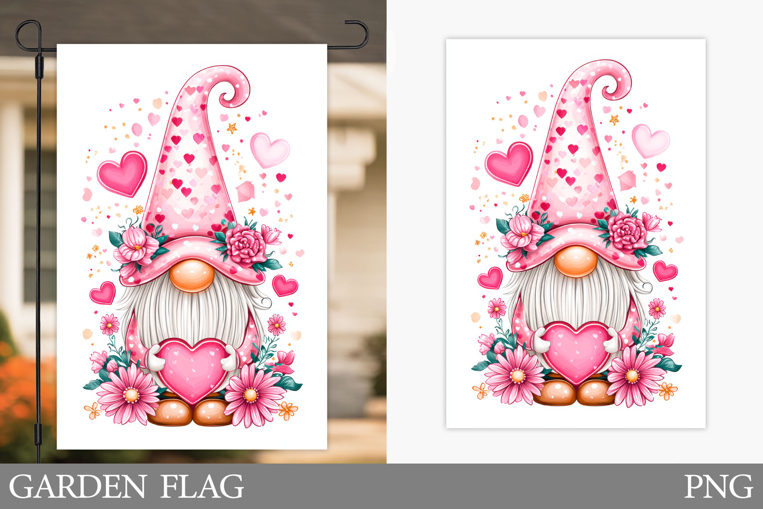 Valentines Gnome Garden Flag. Valentines Garden Flag Design example image 1