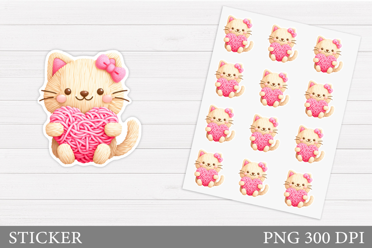 Valentines Cat Sticker Design. Valentines Sticker Printable