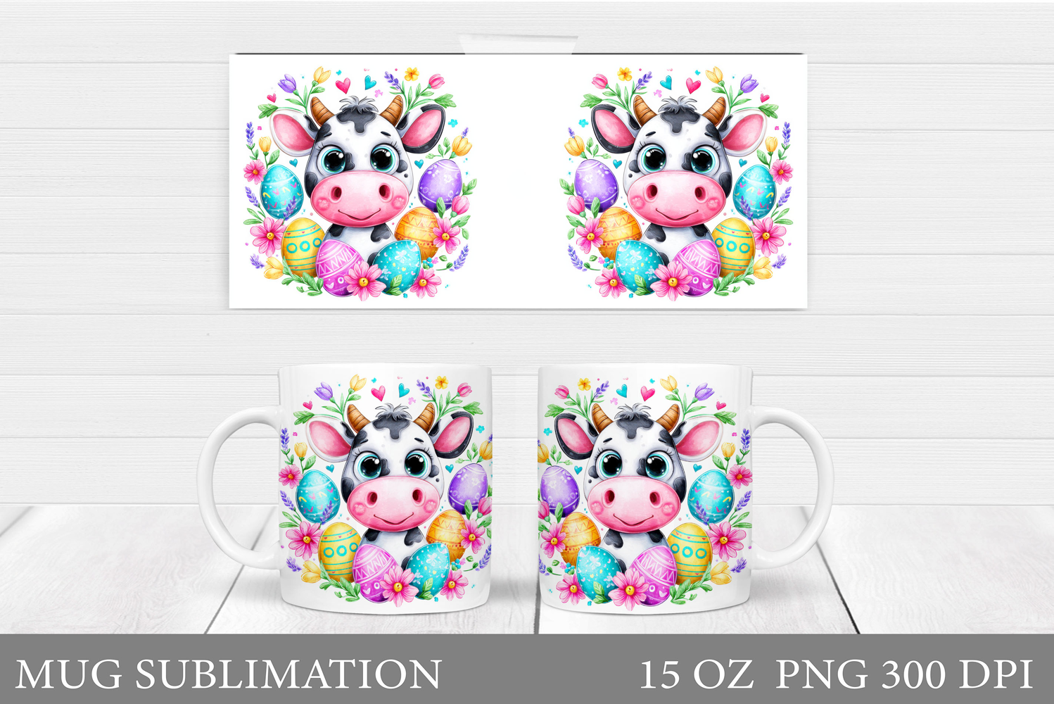 Easter Cow Mug Sublimation. Easter Mug Design