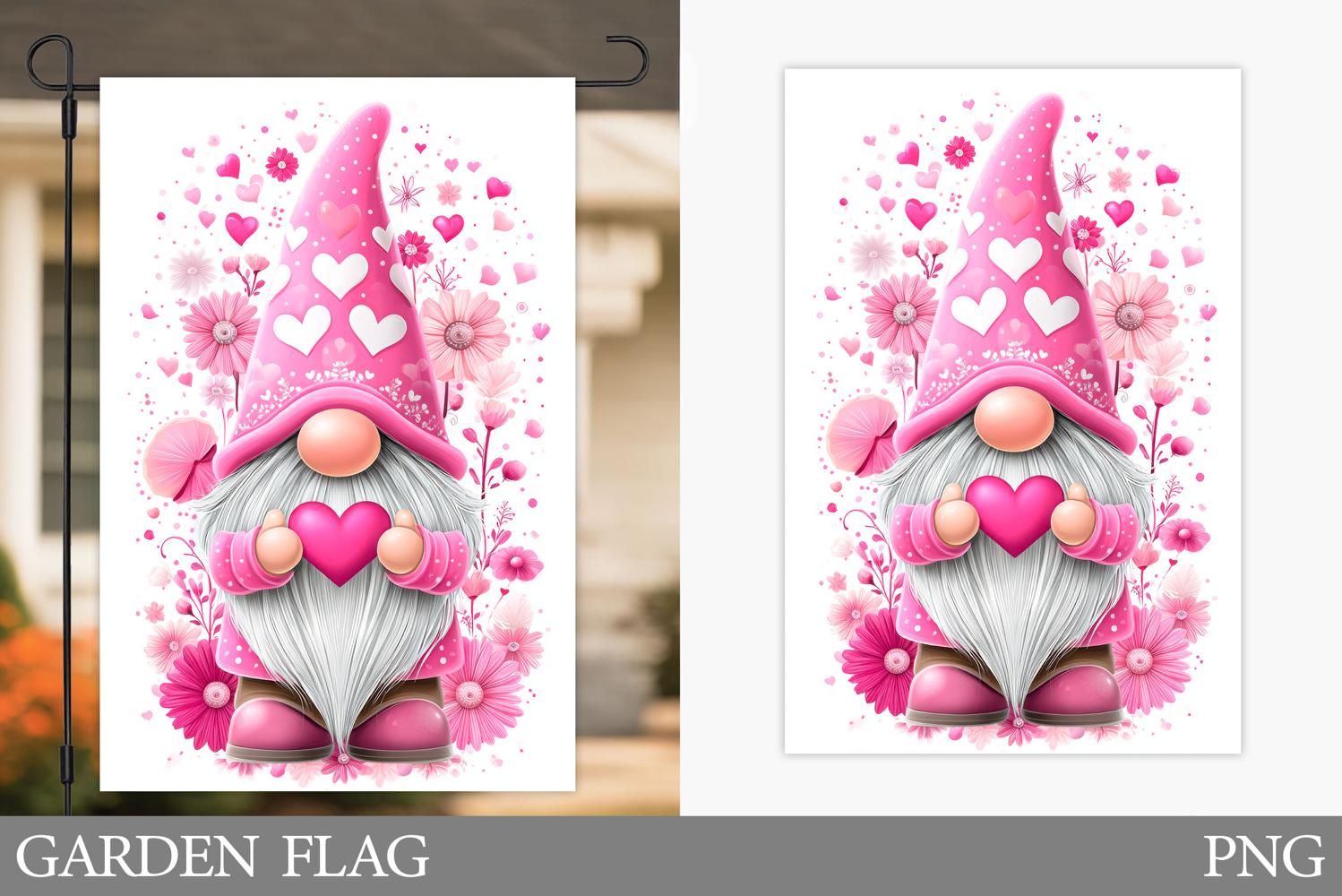 Valentines Gnome Garden Flag. Valentines Garden Flag Design