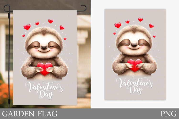 Valentines Sloth Garden Flag. Valentines Garden Flag Design example image 1
