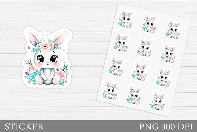 Cute Bunny Sticker Design. Bunny Flowers Sticker Printable example image 1