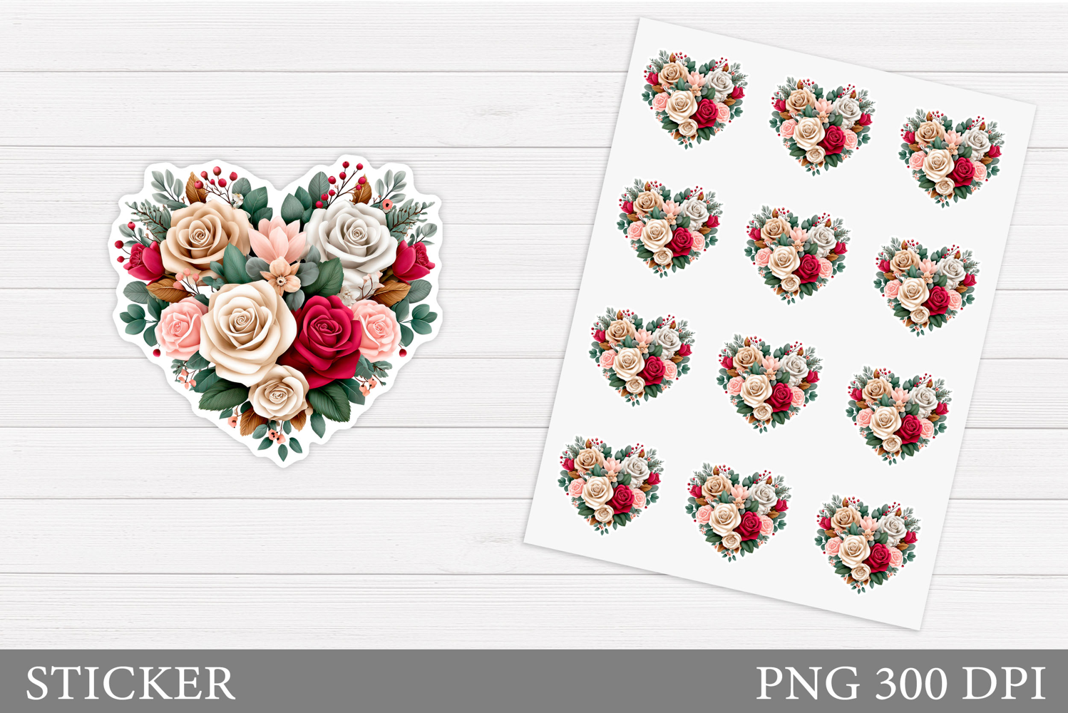 Floral Heart Sticker Printable. Valentines Sticker Design
