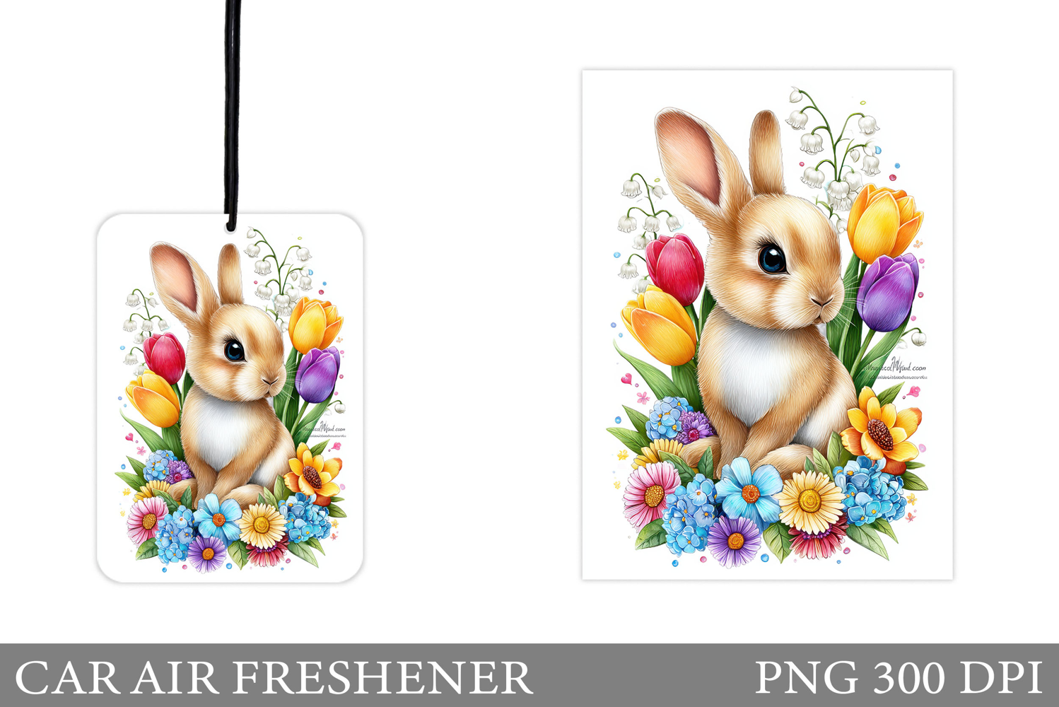 Spring Bunny Car Air Freshener. Cute Bunny Sublimation
