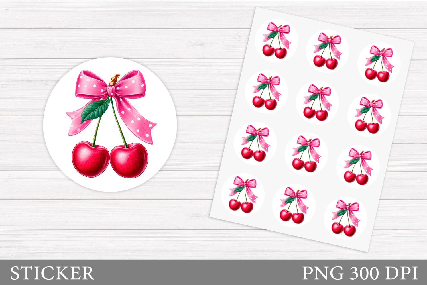 Cherry Stickers Design. Berries Sticker Printable