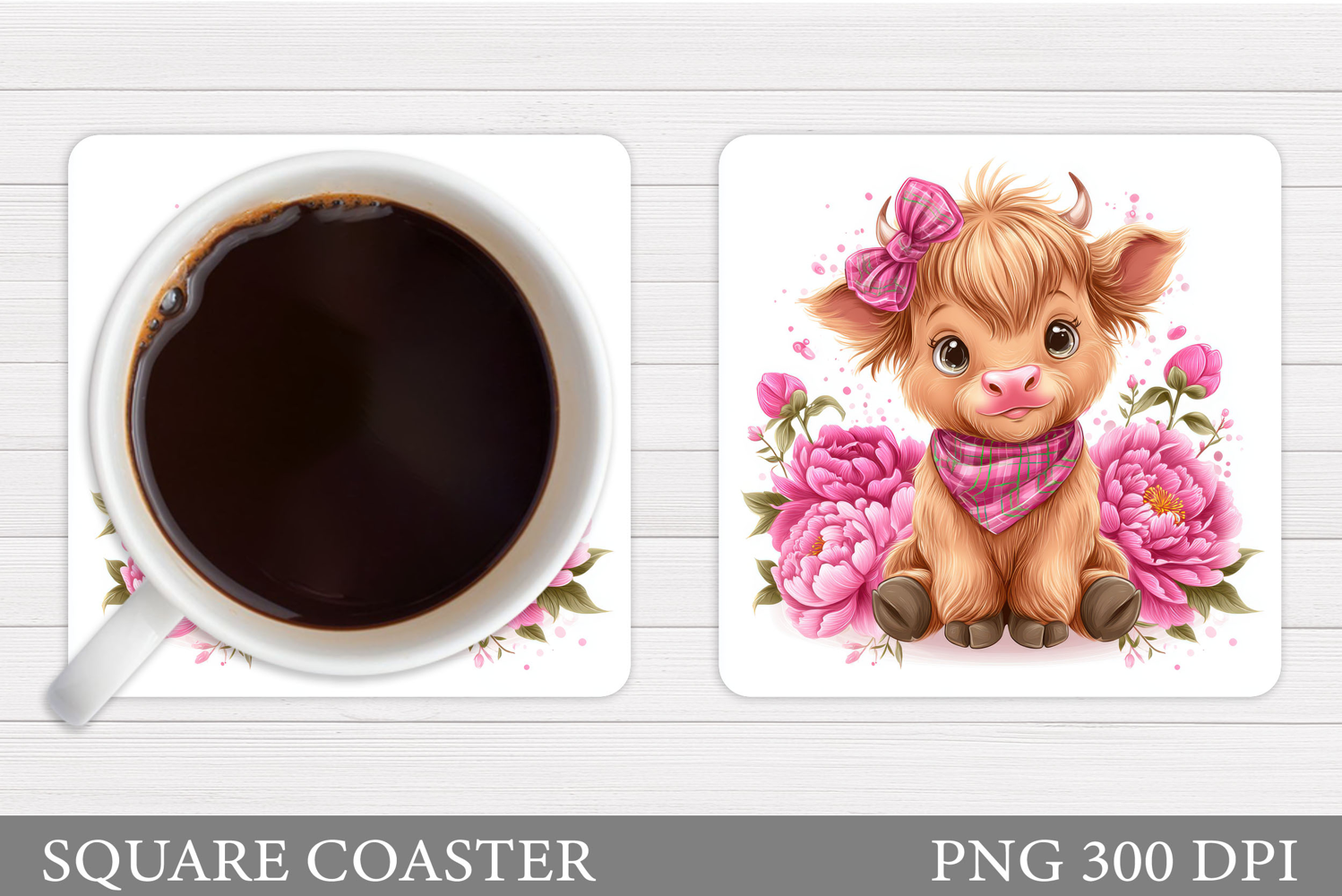 Highland Coaster Sublimation. Cow Flowers Coaster Design example image 1