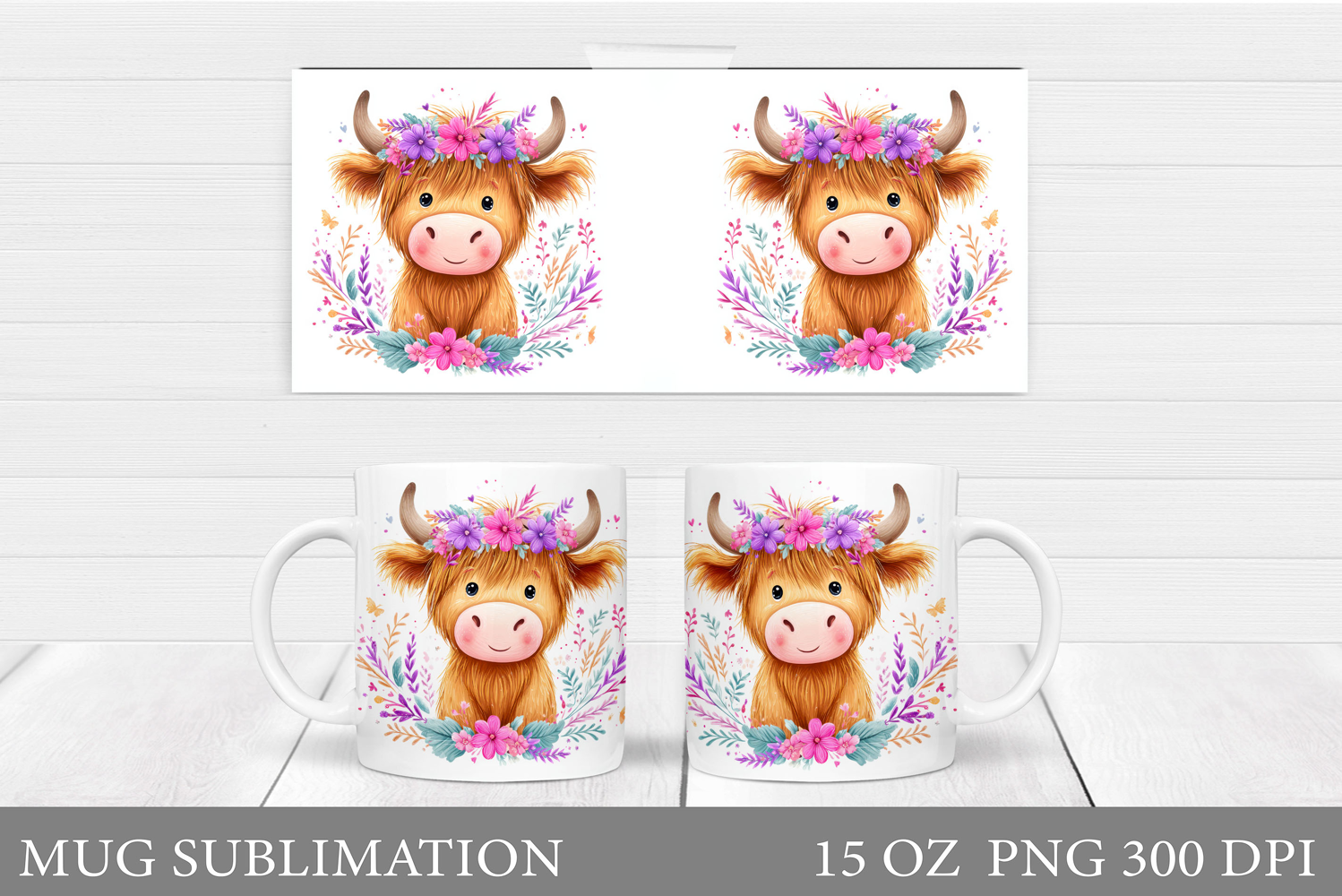 Valentines Mug Highland Cow Sublimation Mug Wrap Sublimation Cow Mug Highland Cow Mug Cow Mug Sublimation Cute Cow Mug Cow Mug Wrap Design Summer Cow Mug Cow Flowers Mug
