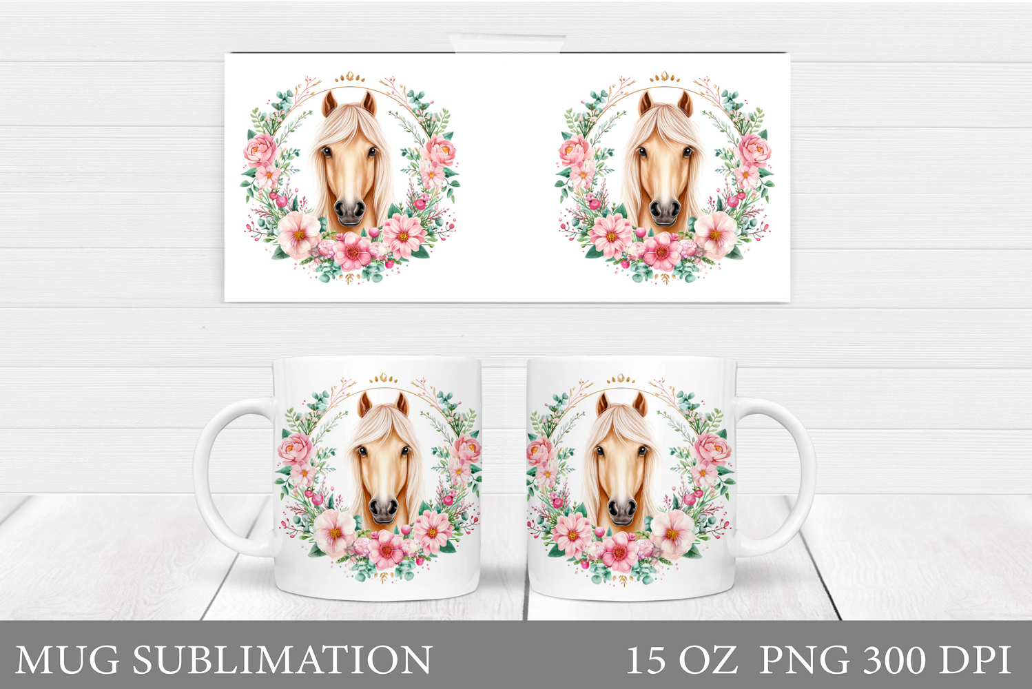Similar Design Products to Horse Mug Wrap Sublimation. Horse Flowers Mug Design