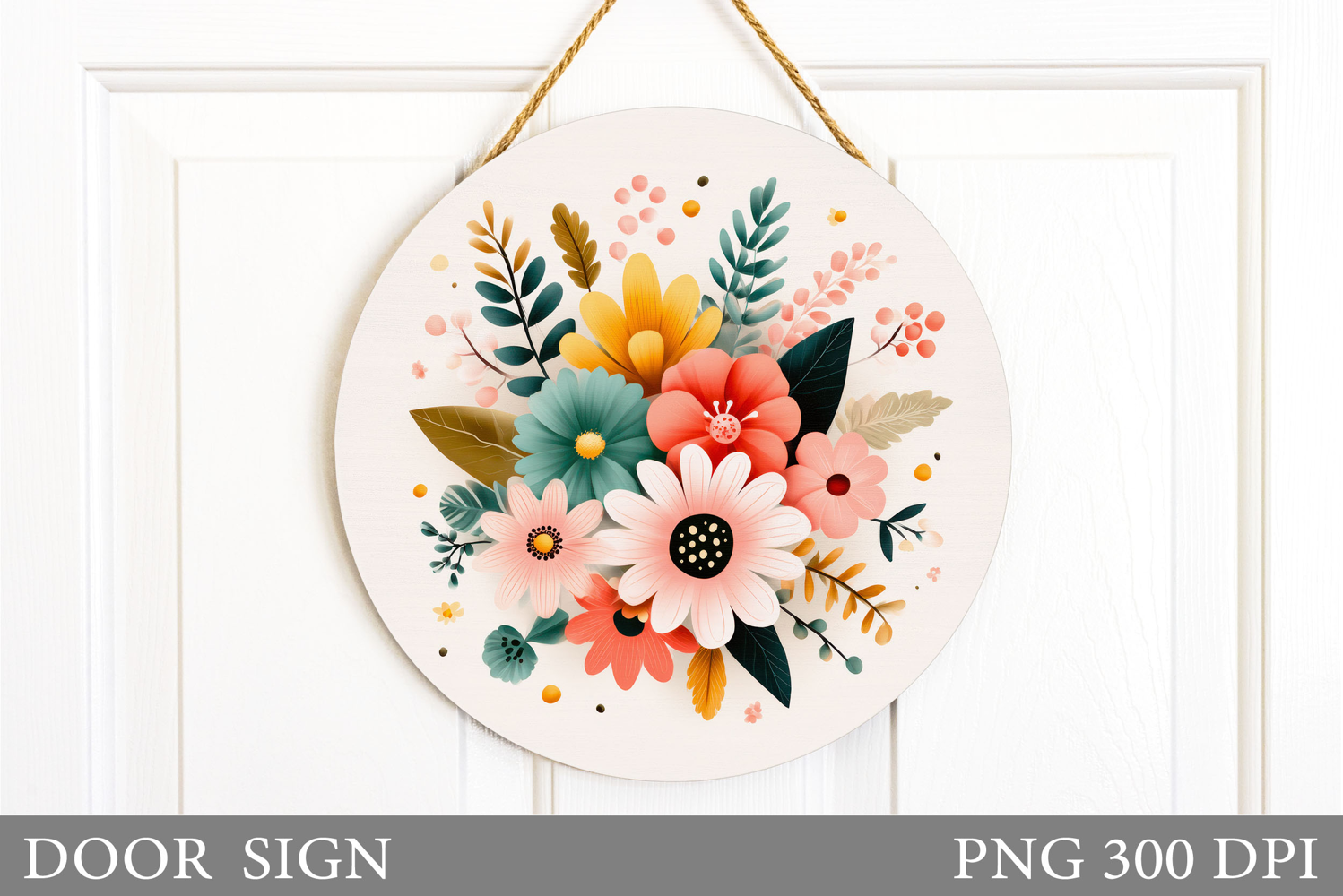 Wildflowers Door Sign Sublimation. Flowers Door Sign Design example image 1