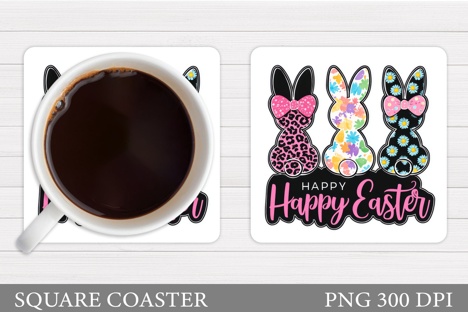 Bunny Easter Coaster Design. Easter Bunny Square Coaster