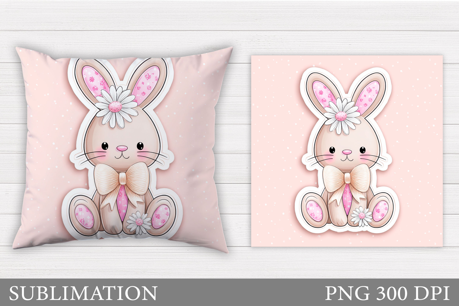 Cute Bunny Pillow Design. Cute Bunny Sublimation example image 1