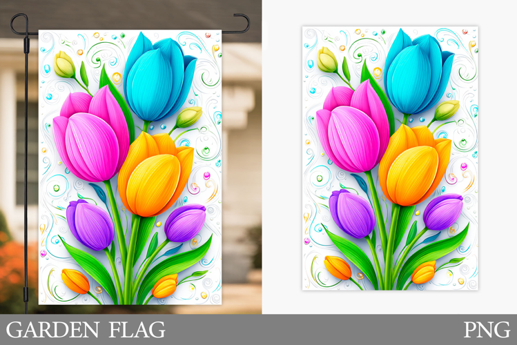 Tulips Garden Flag Sublimation. Flowers Garden Flag Design