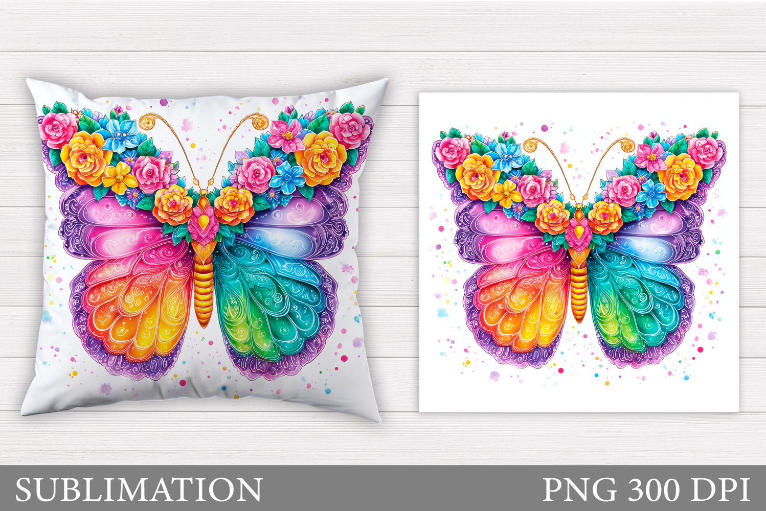 Floral Butterfly Pillow Design. Butterfly Sublimation