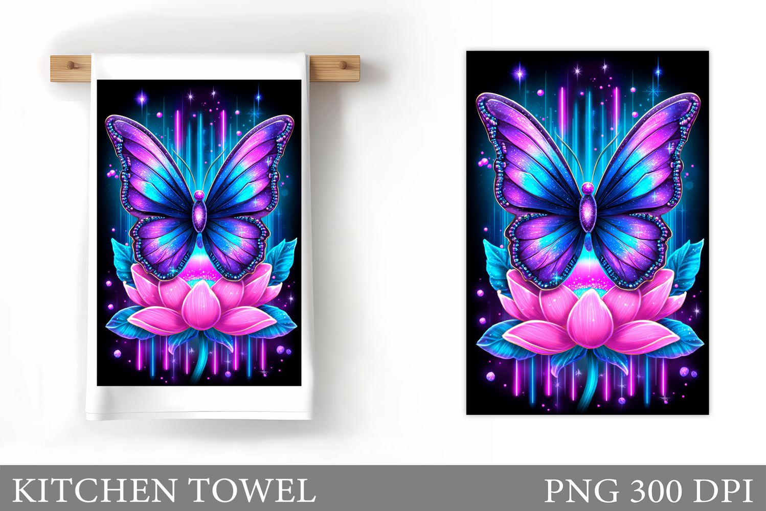 Butterfly Kitchen Towel. Flowers Kitchen Towel Sublimation