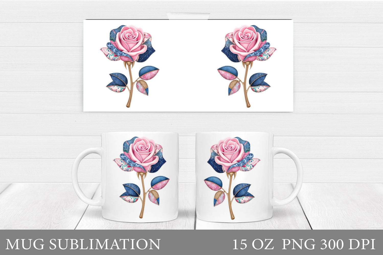 Roses Mug Wrap Design. Flowers Mug Sublimation
