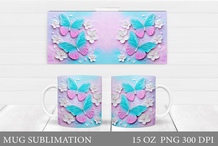 Butterflies Mug Design. Floral Mug Sublimation