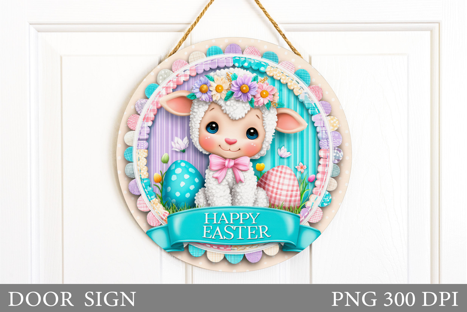 Easter Lamb Door Sign Design. Easter Door Sign Sublimation
