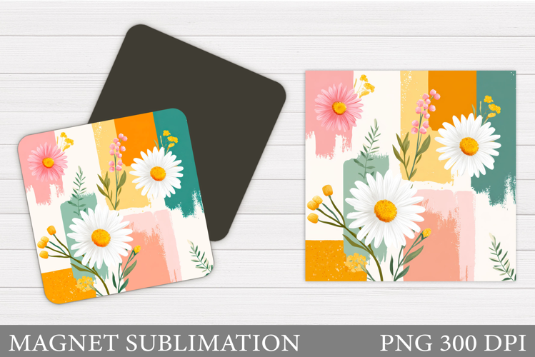 Daisy Flowers Magnet. Flowers Square Magnet Design