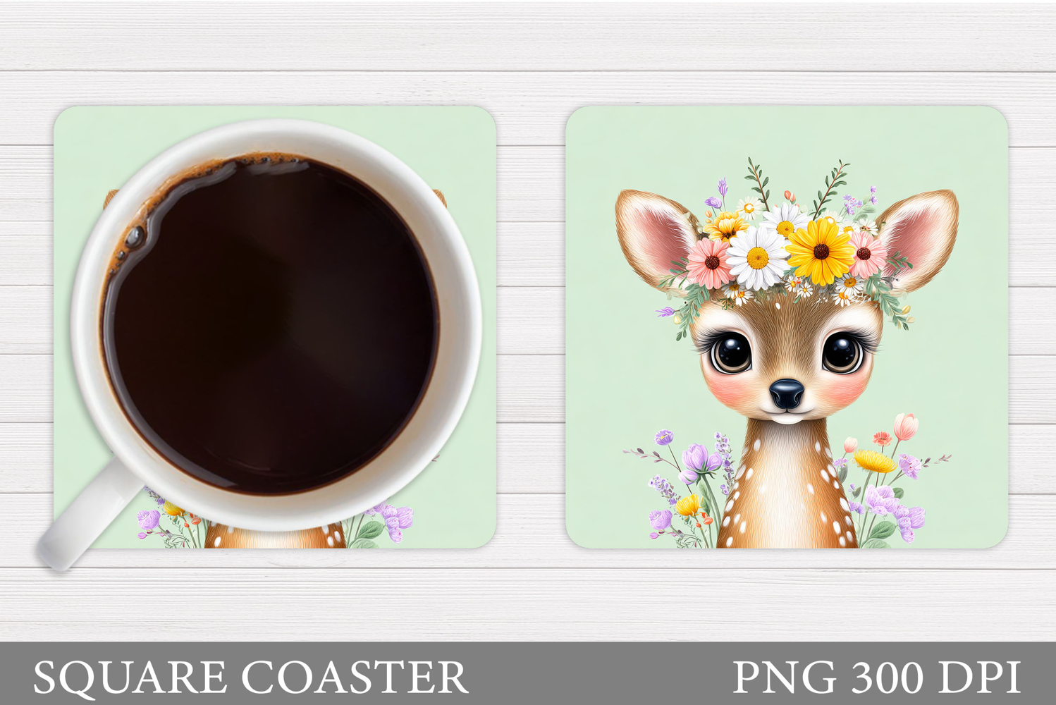 Cute Deer Sublimation Deer Square Coaster Deer Coaster Design Deer Coaster Sublimation Deer Coaster Cute Deer Coaster Deer Coaster Template Deer Flowers Coaster Summer Deer Coaster