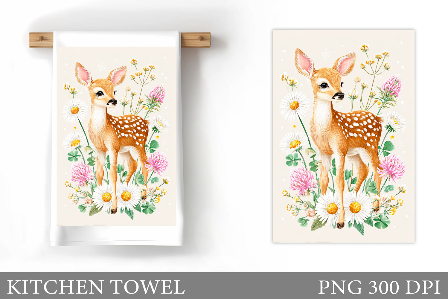 Deer Kitchen Towel. Deer Flowers Kitchen Towel Design example image 1