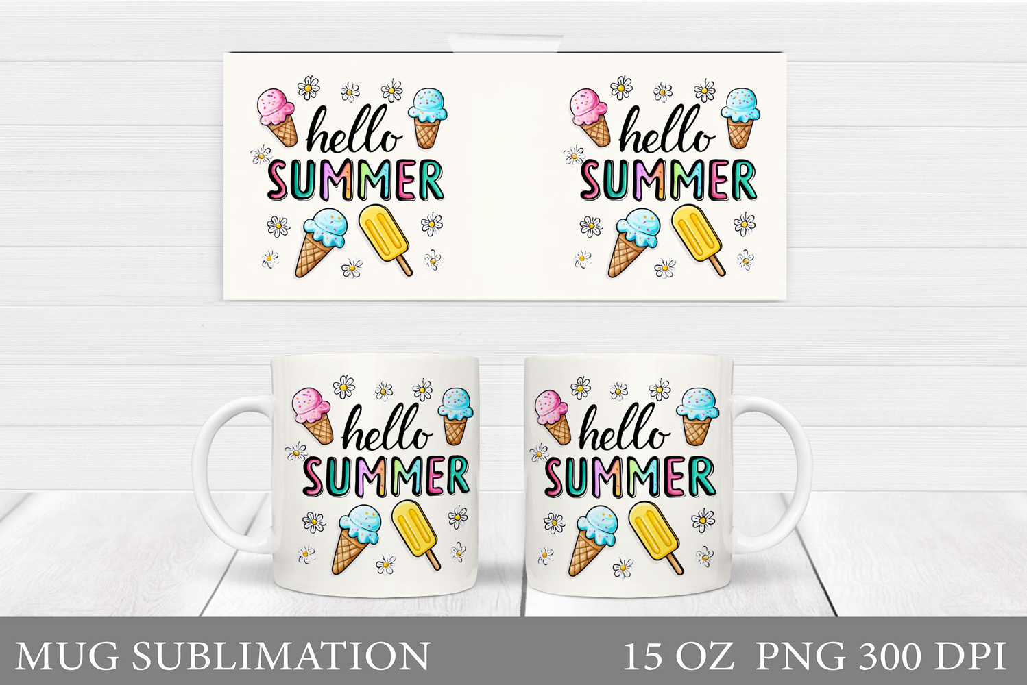 Summer Mug Sublimation. Hello Summer Mug Wrap Design