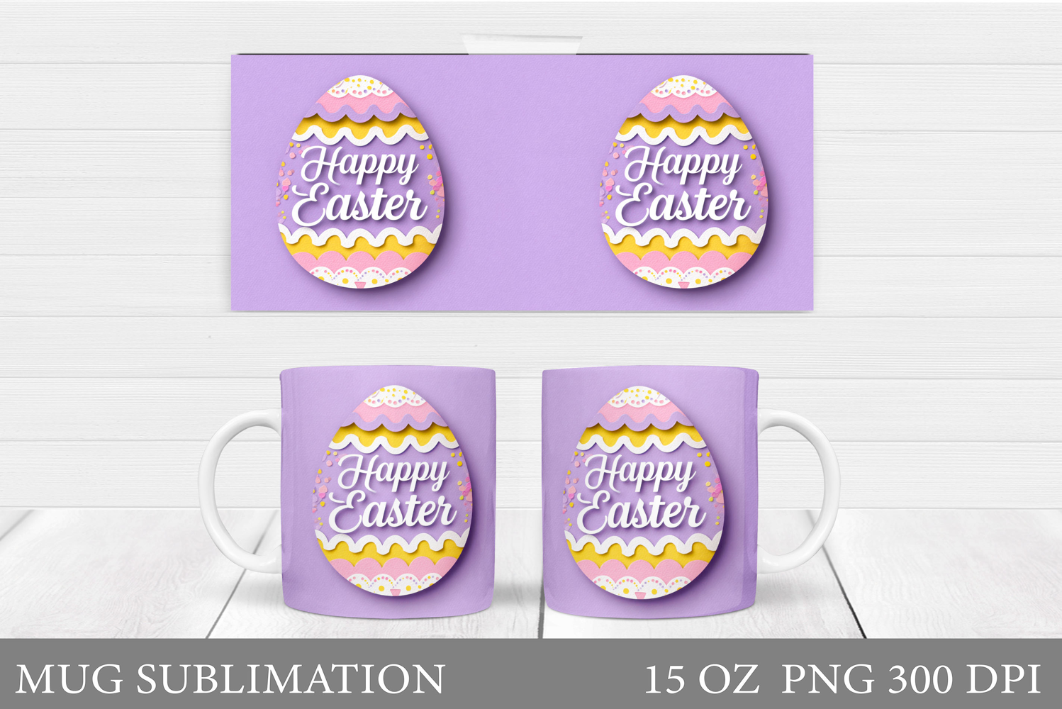 Easter Mug Wrap Design. Happy Easter Sublimation