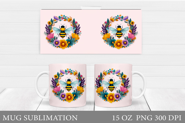 Bee Sublimation Mug Sublimation Mug Wrap Sublimation Bee Mug Bee Mug Template Flowers Mug Flowers Mug Sublimation Bee Mug Sublimation Bee Flowers Mug Wrap Bee Flowers Mug