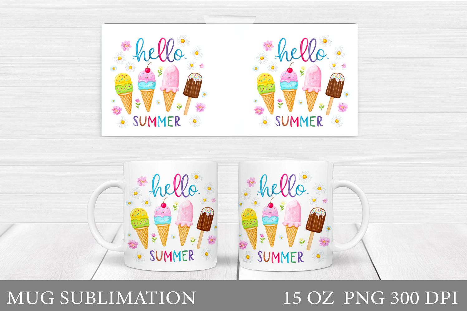 Summer Mug Sublimation. Ice Cream Mug Wrap Design