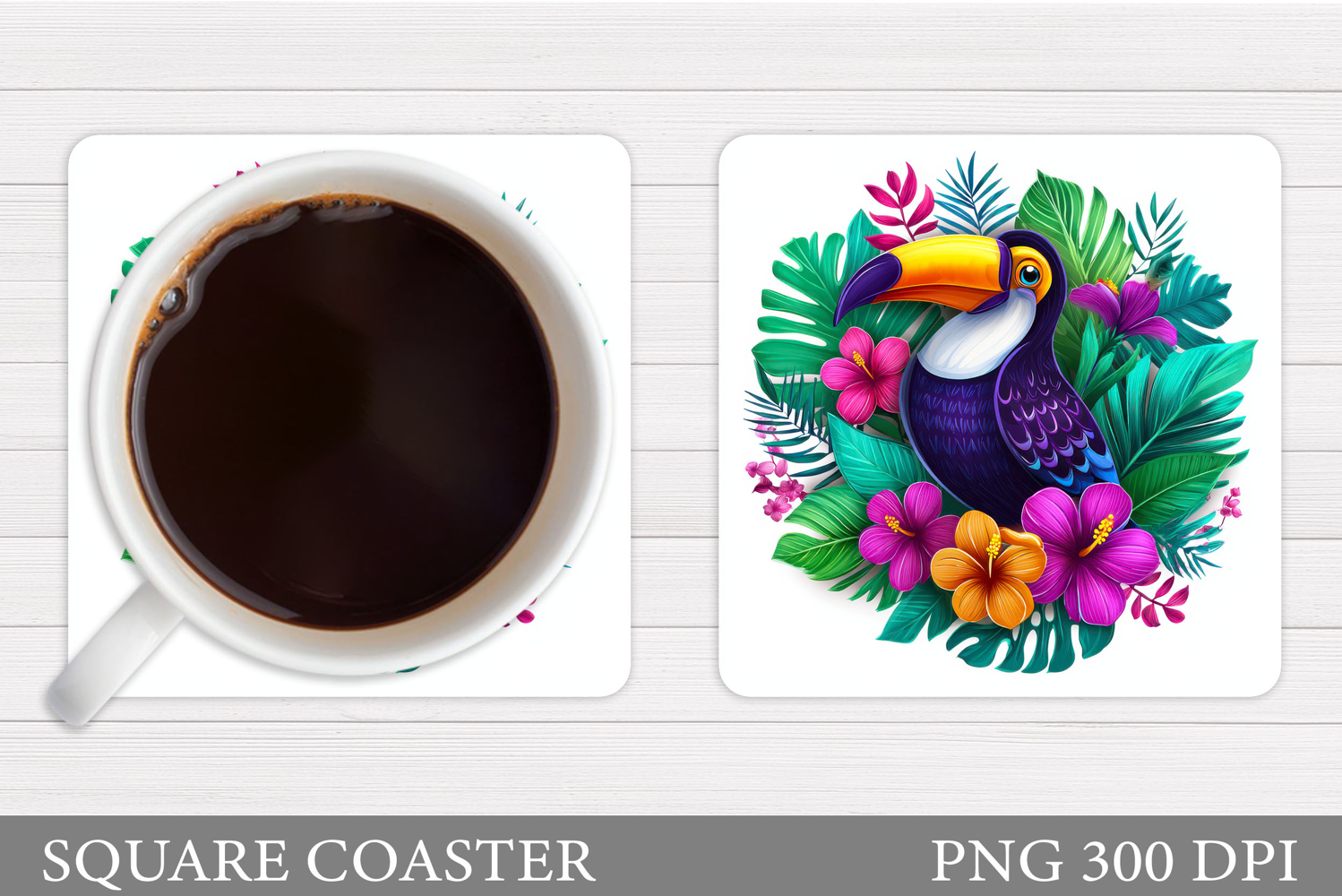 Toucan Coaster Design. Toucan Flowers Coaster Sublimation