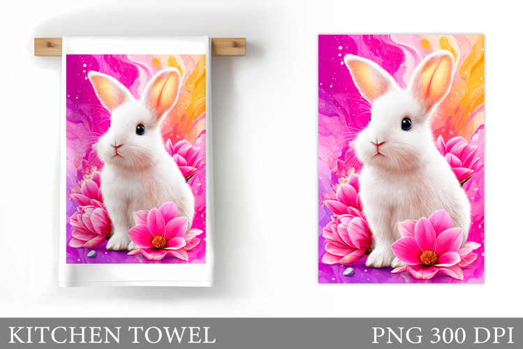 Cute Bunny Kitchen Towel Design. Cute Bunny Sublimation example image 1
