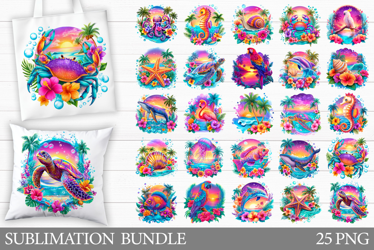 Sea Animals Sublimation Bundle. Sea Animals Clipart