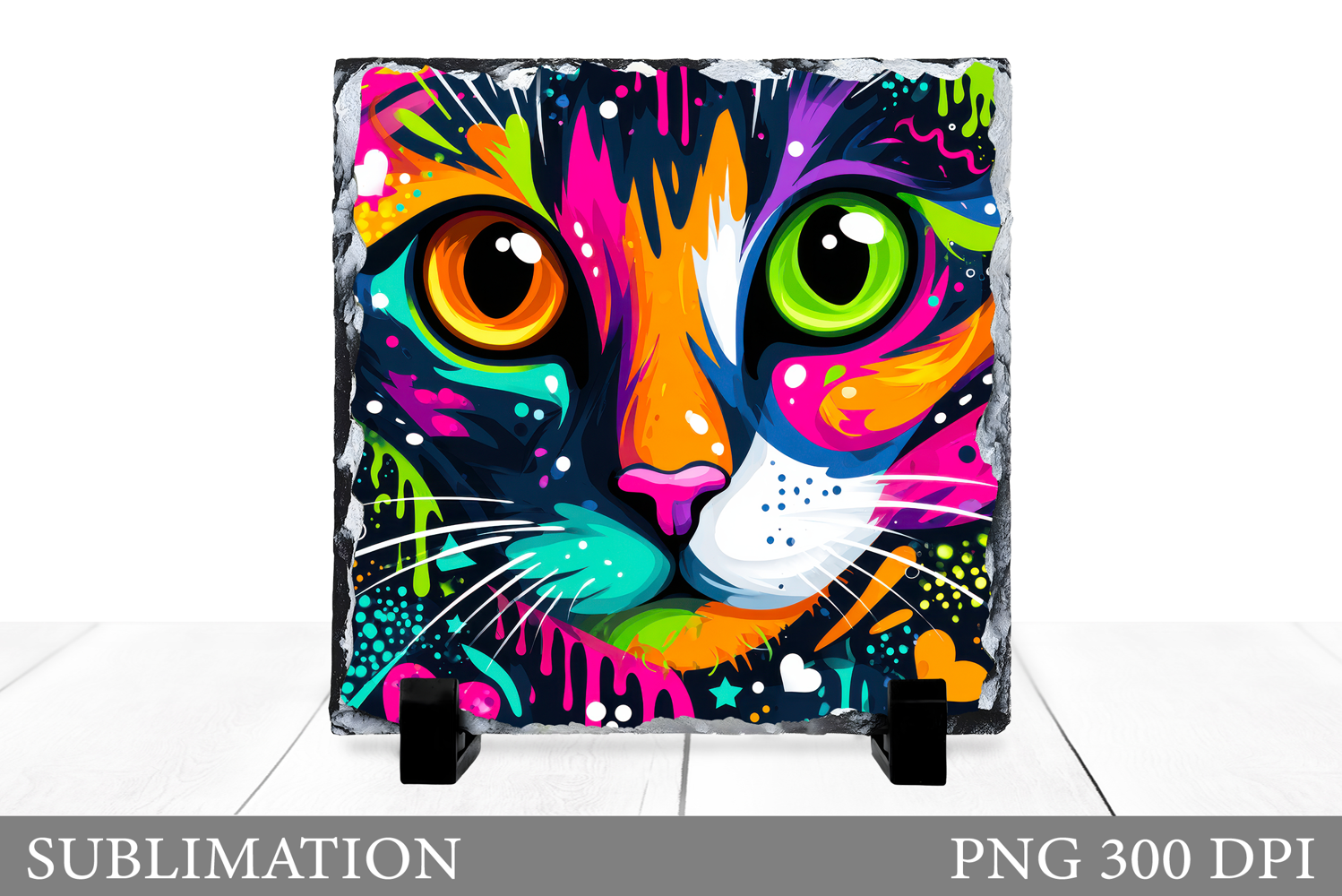 Colorful Cat Sublimation. Cat Slate Sublimation