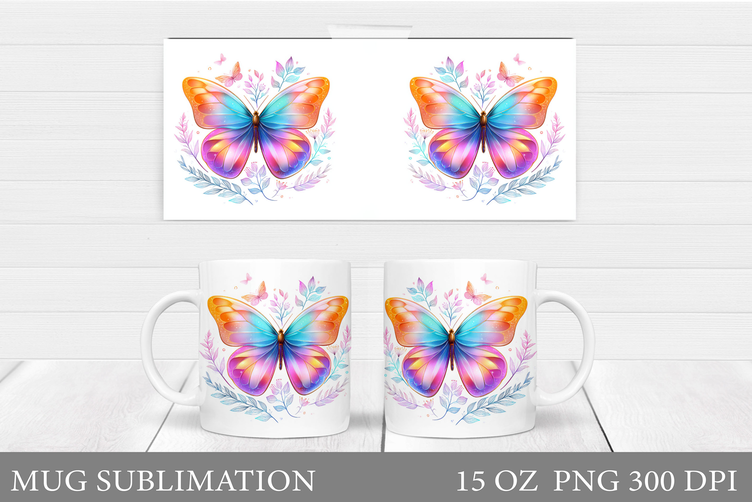 Butterfly Mug Sublimation. Butterfly Flowers Mug Design