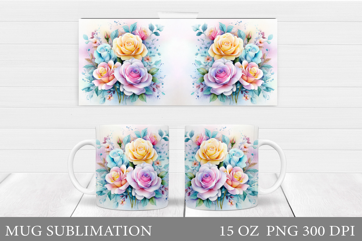 Roses Mug Sublimation. Flowers Mug Wrap Design