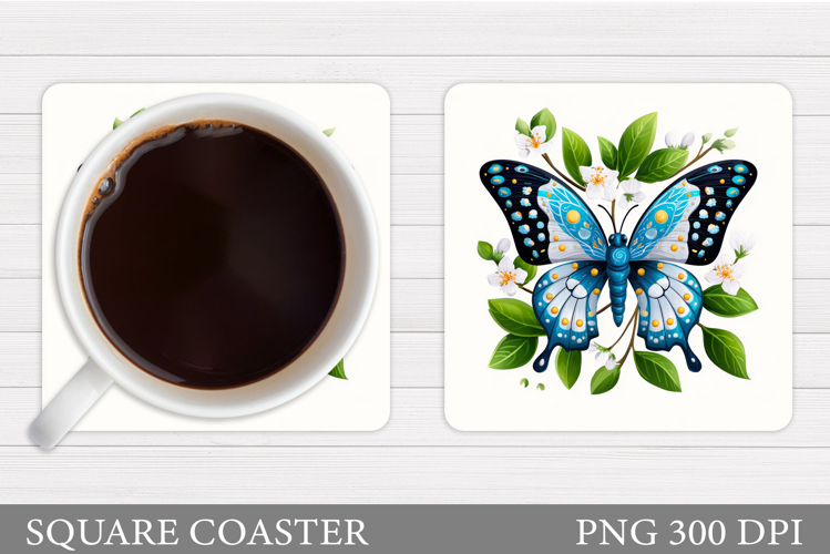 Butterfly Coaster Sublimation. Butterfly Flowers Coaster