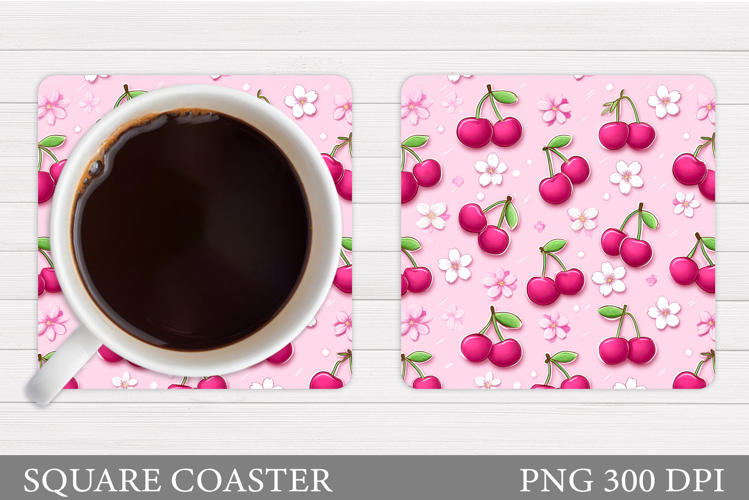 Cherry Coaster Sublimation. Berries Coaster Design