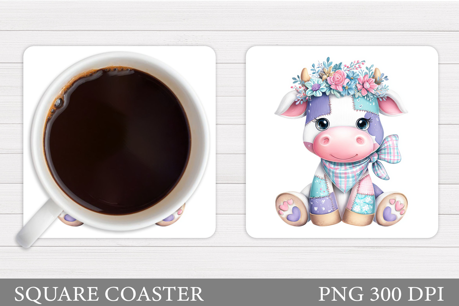 Similar Design Products to Patchwork Cow Coaster Design. Cute Cow Sublimation