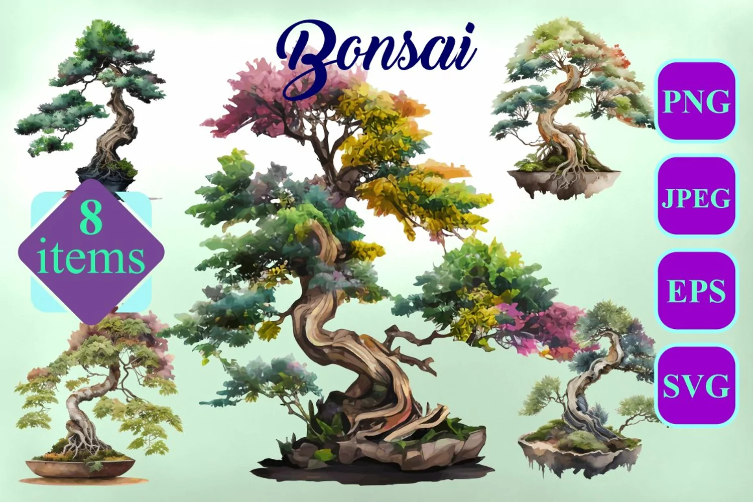 Similar Design Products to Bonsai Watercolor Sublimation Bundle Clipart PNG, SVG, EPS