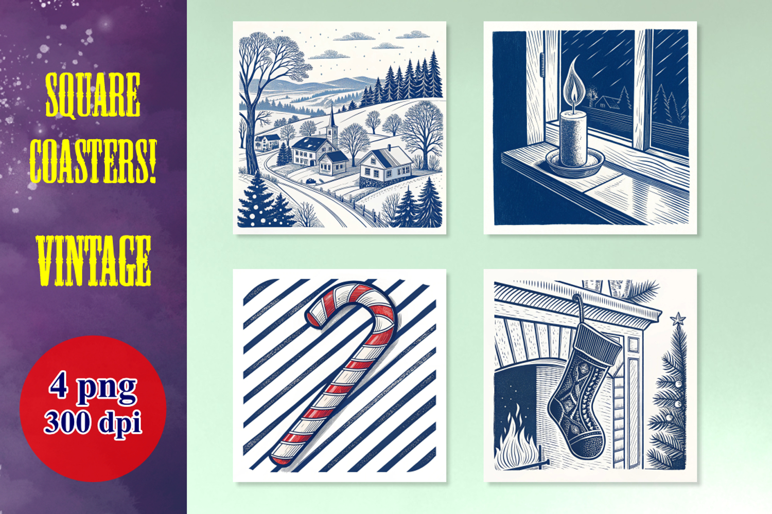 Similar Design Products to VINTAGE CHRISTMAS SCENES Coaster PNG Set