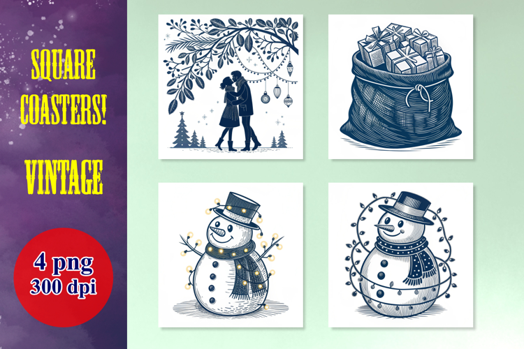 Vintage Christmas Essentials Coasters PNG Bundle - 4 Designs example image 1