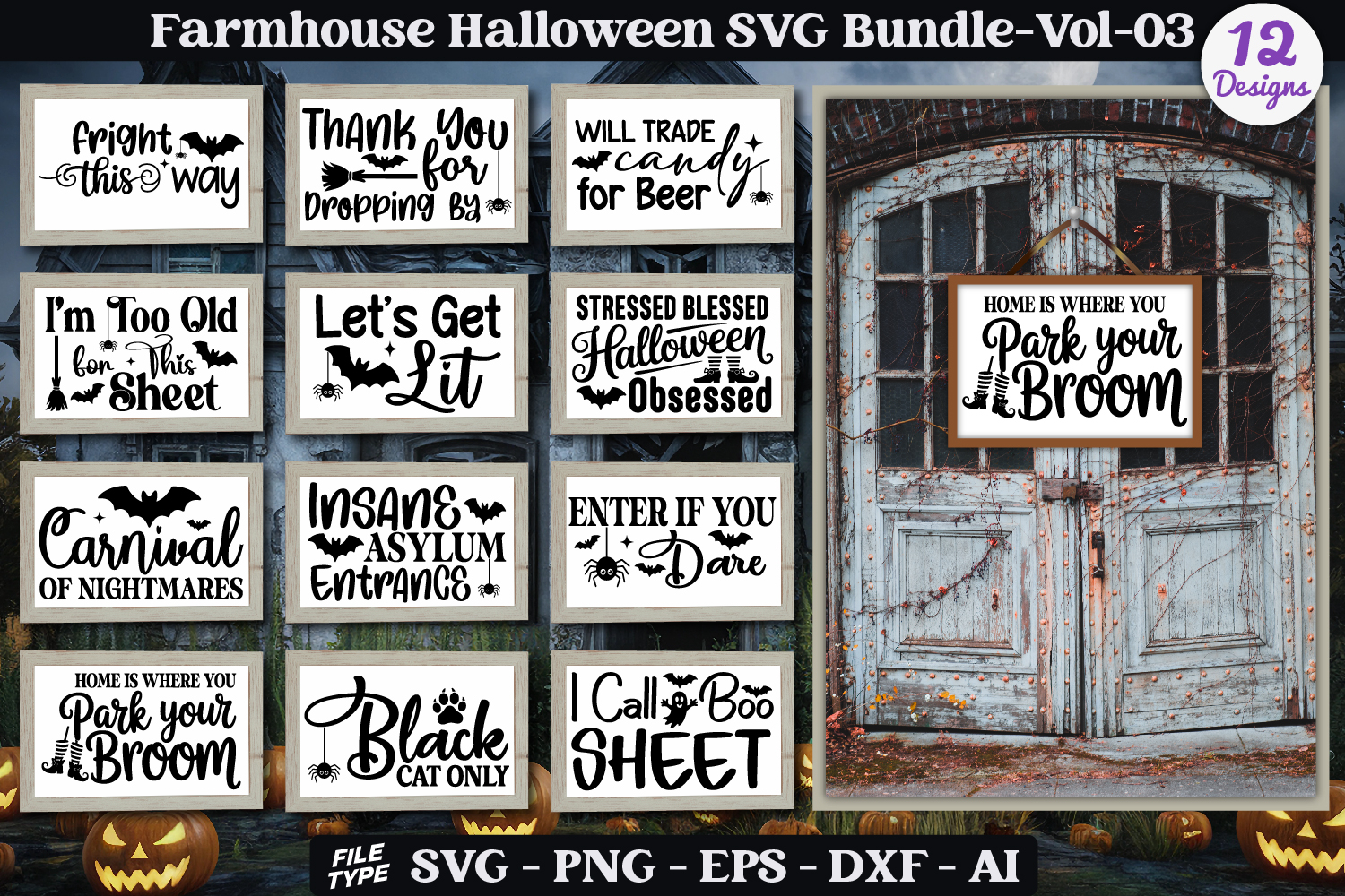 Farmhouse Halloween Sign SVG Bundle | Halloween Door Sign