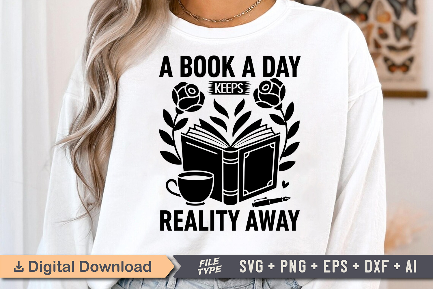 A Book a Day Keeps Reality Away SVG, Book Lover SVG, Reading example image 1