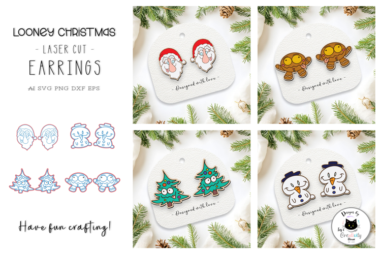 I present you a cute set of 4 Christmas Laser Cut Stud Earring Designs – perfect for celebrating the holiday season!