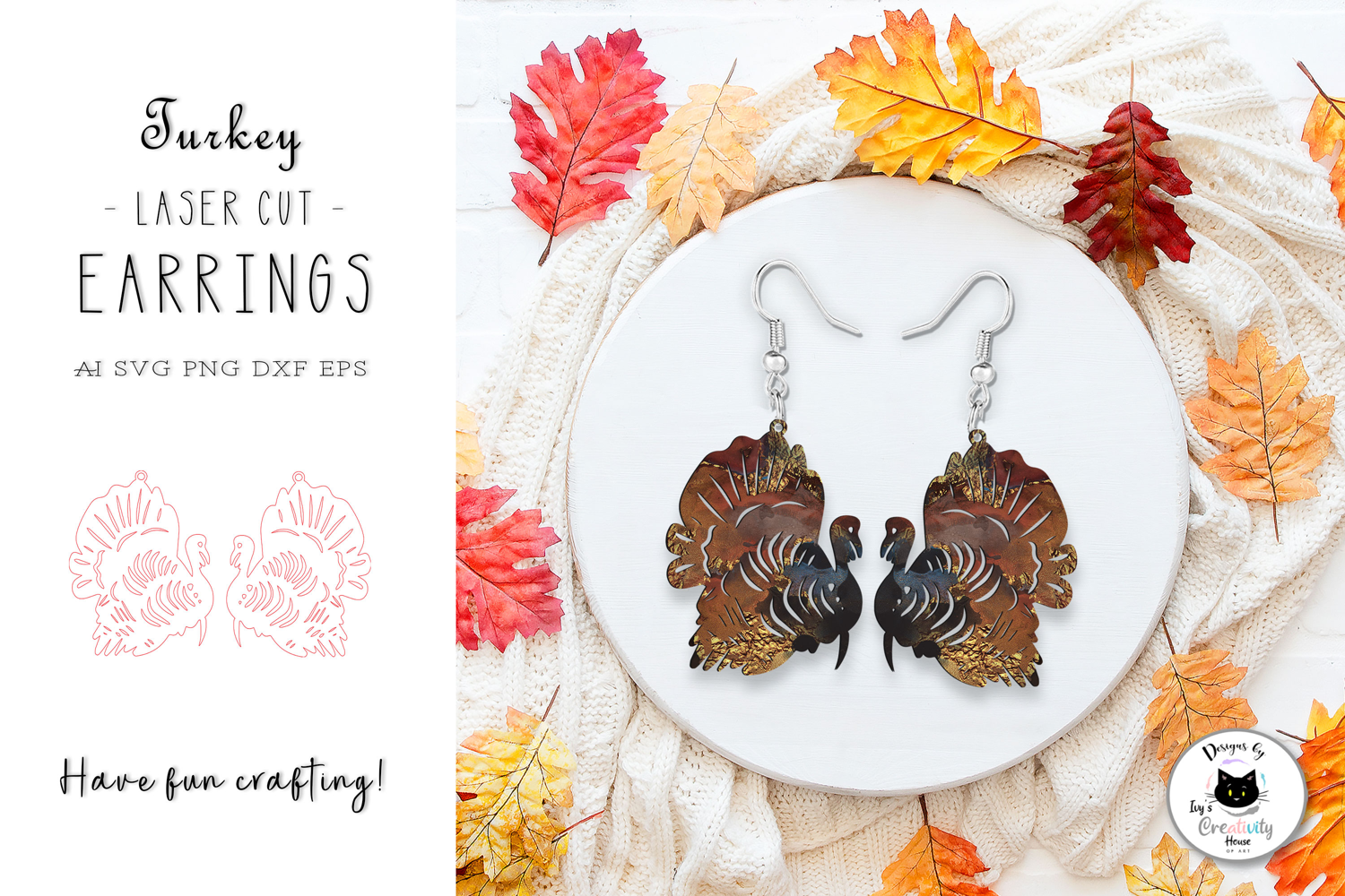 Thanksgiving Laser Cut Earrings | Turkey Laser SVG