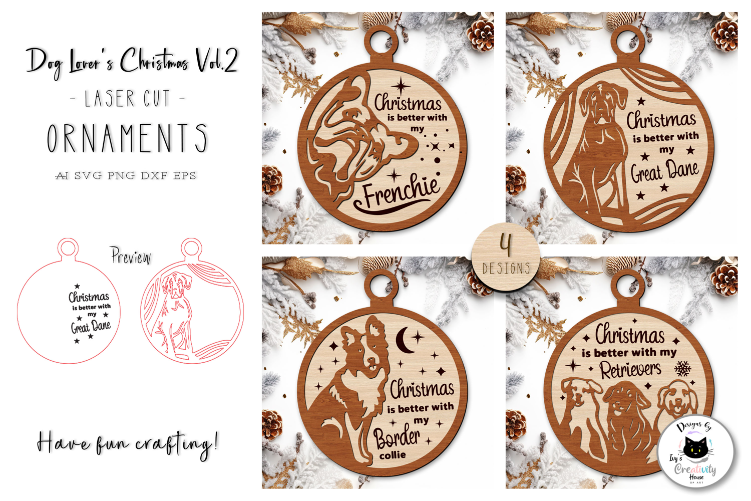 Celebrate your furry best friends with these amazing and unique Christmas Dog Laser Cut Ornament SVG Designs, this time with Vol.2!