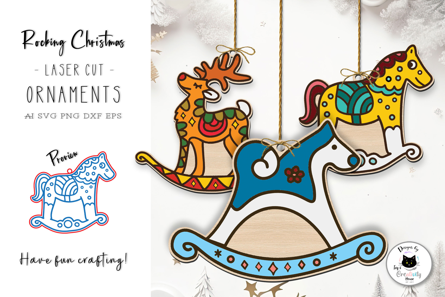 Cute Christmas Ornaments Laser Cut SVG | Rocking Horse SVG example image 1