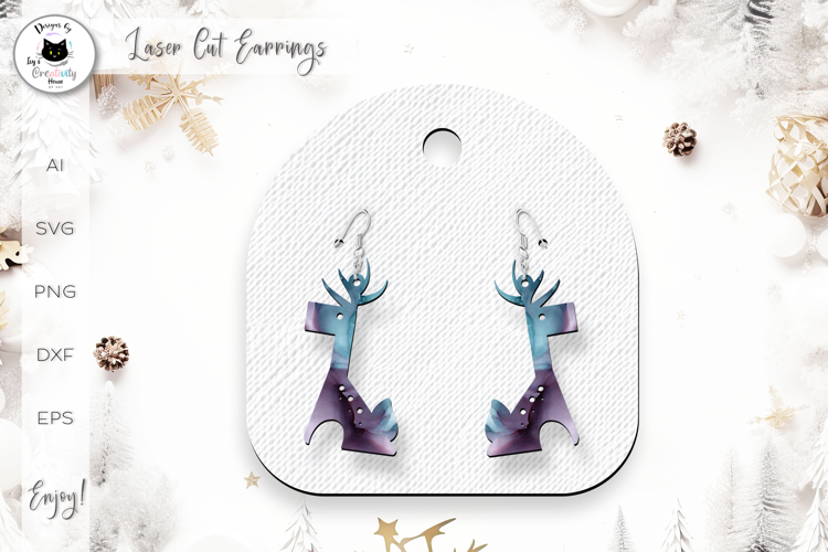 Christmas Earrings Laser Cut | Reindeer Earrings SVG