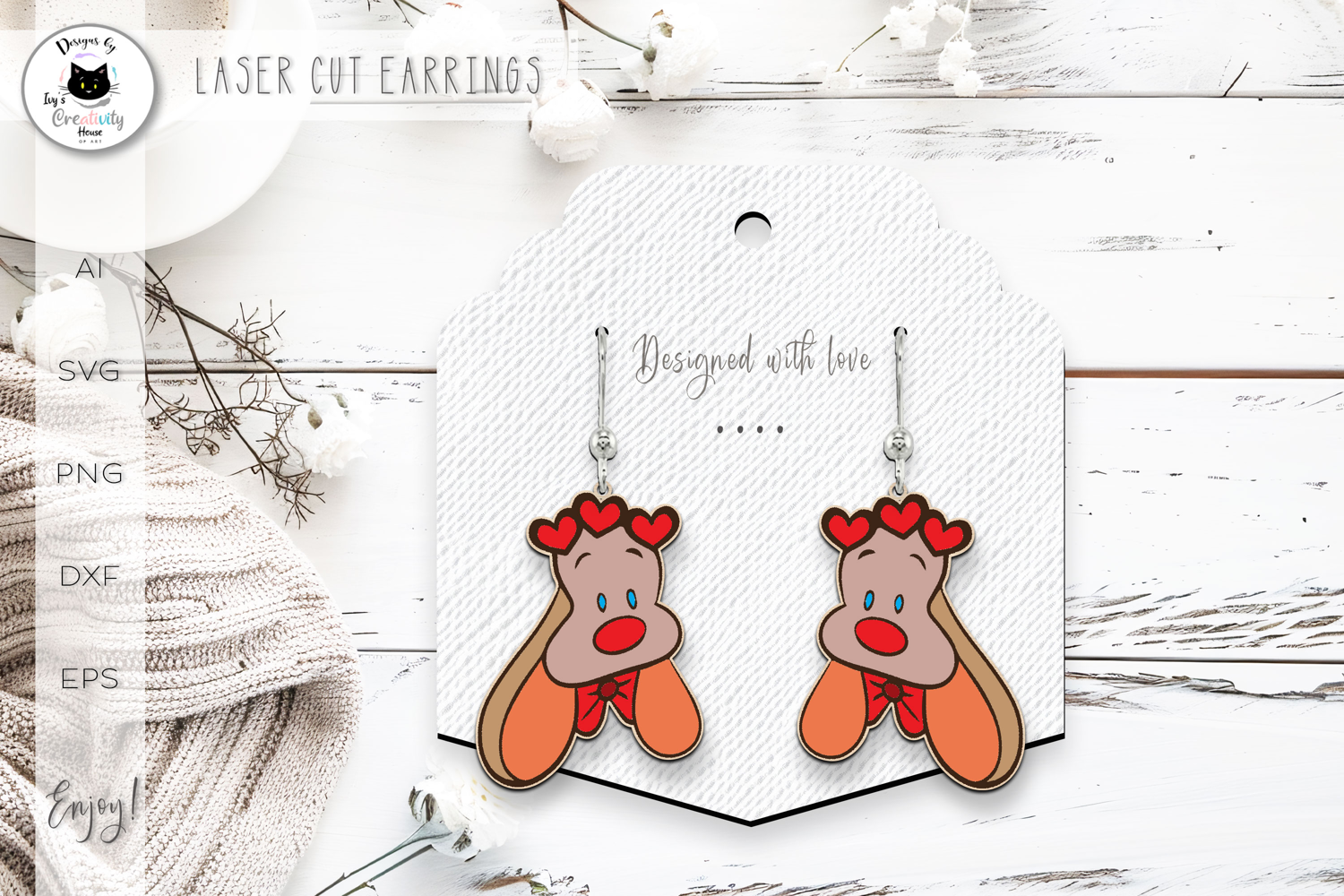 Cute Bunny Valentine Laser Earrings SVG – unique, playful and sweet, suitable for daily wear and your Valentine's collection!