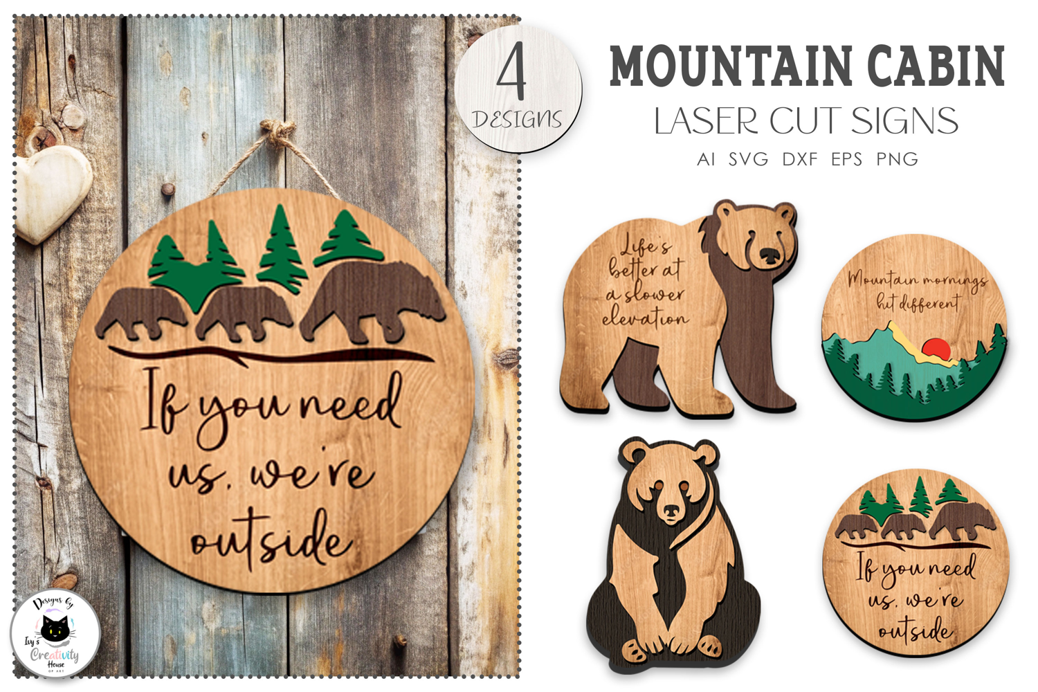 Mountain Cabin Laser Cut Signs | Layered Bear Signs